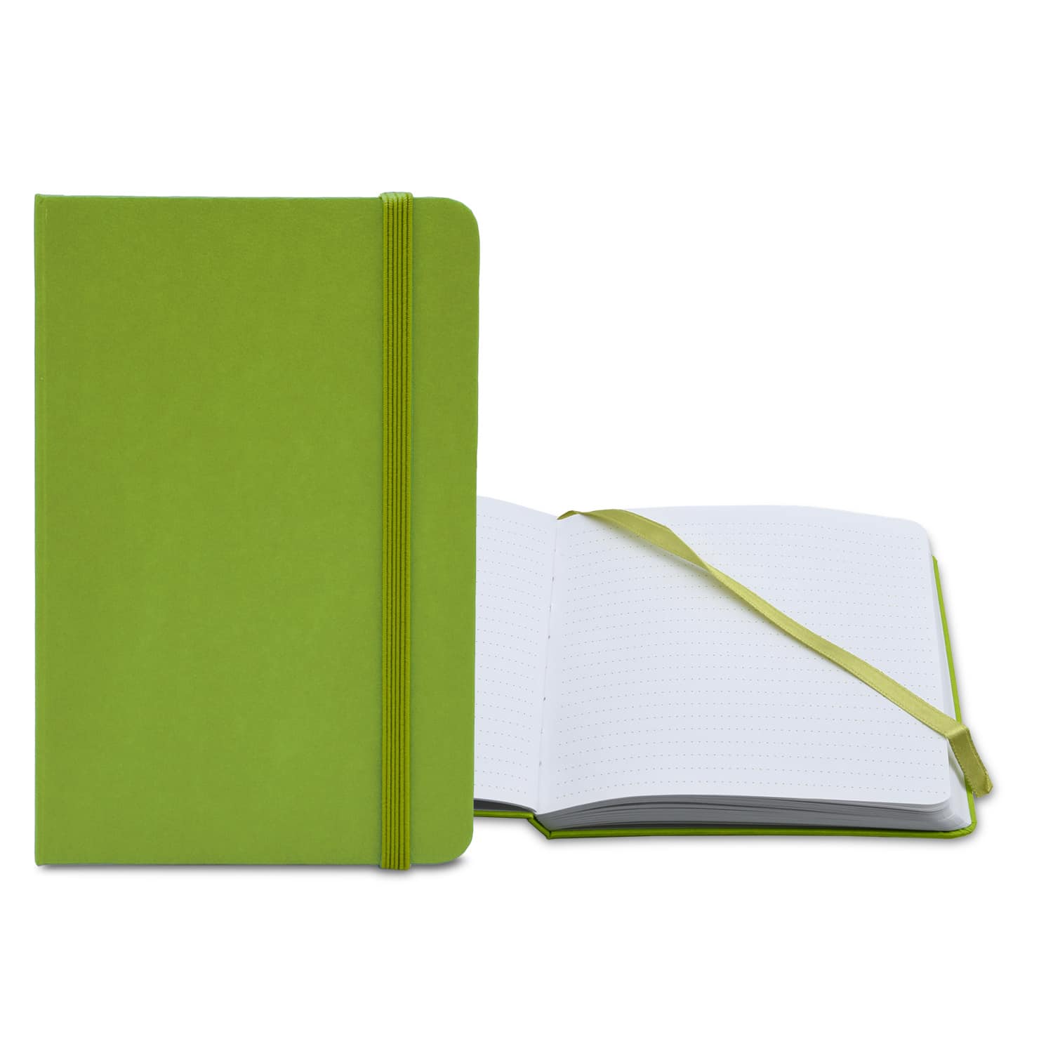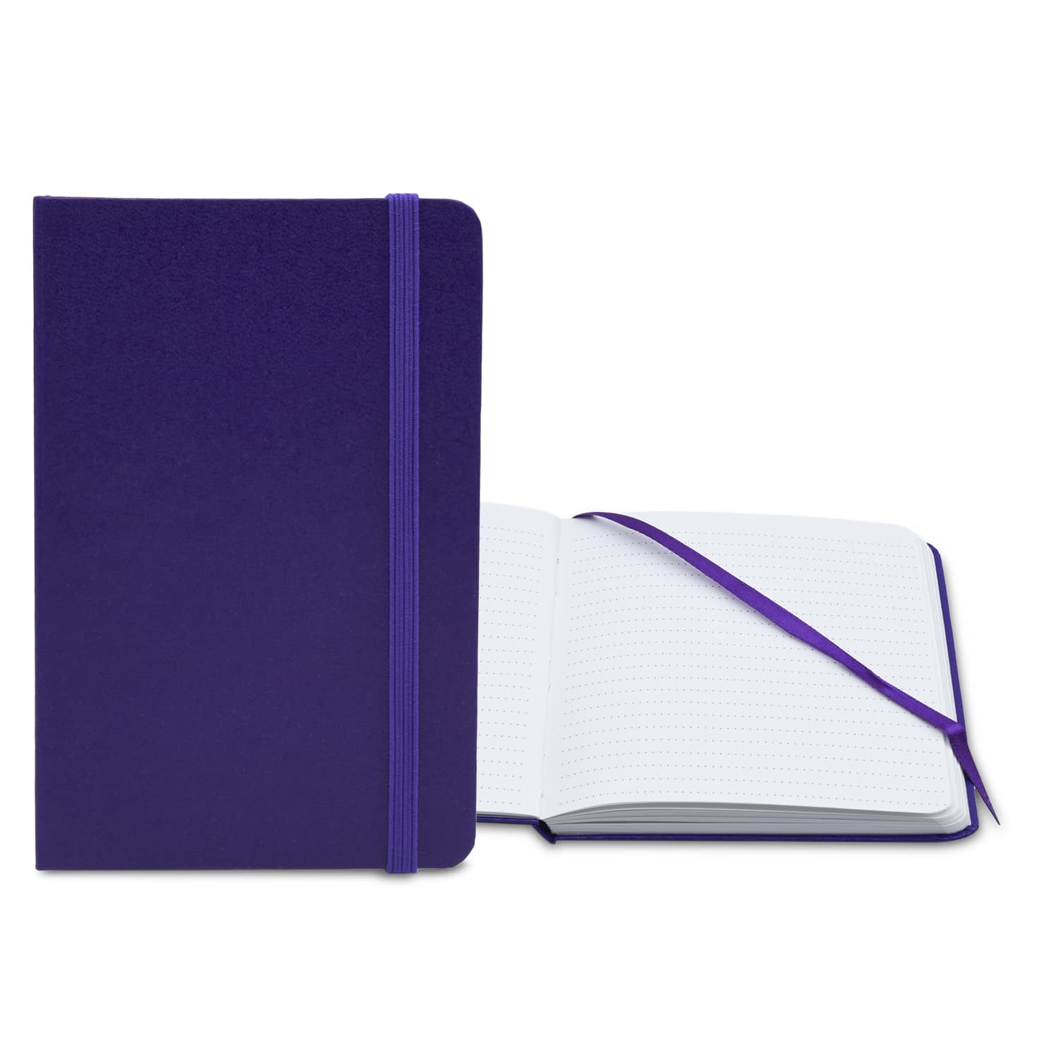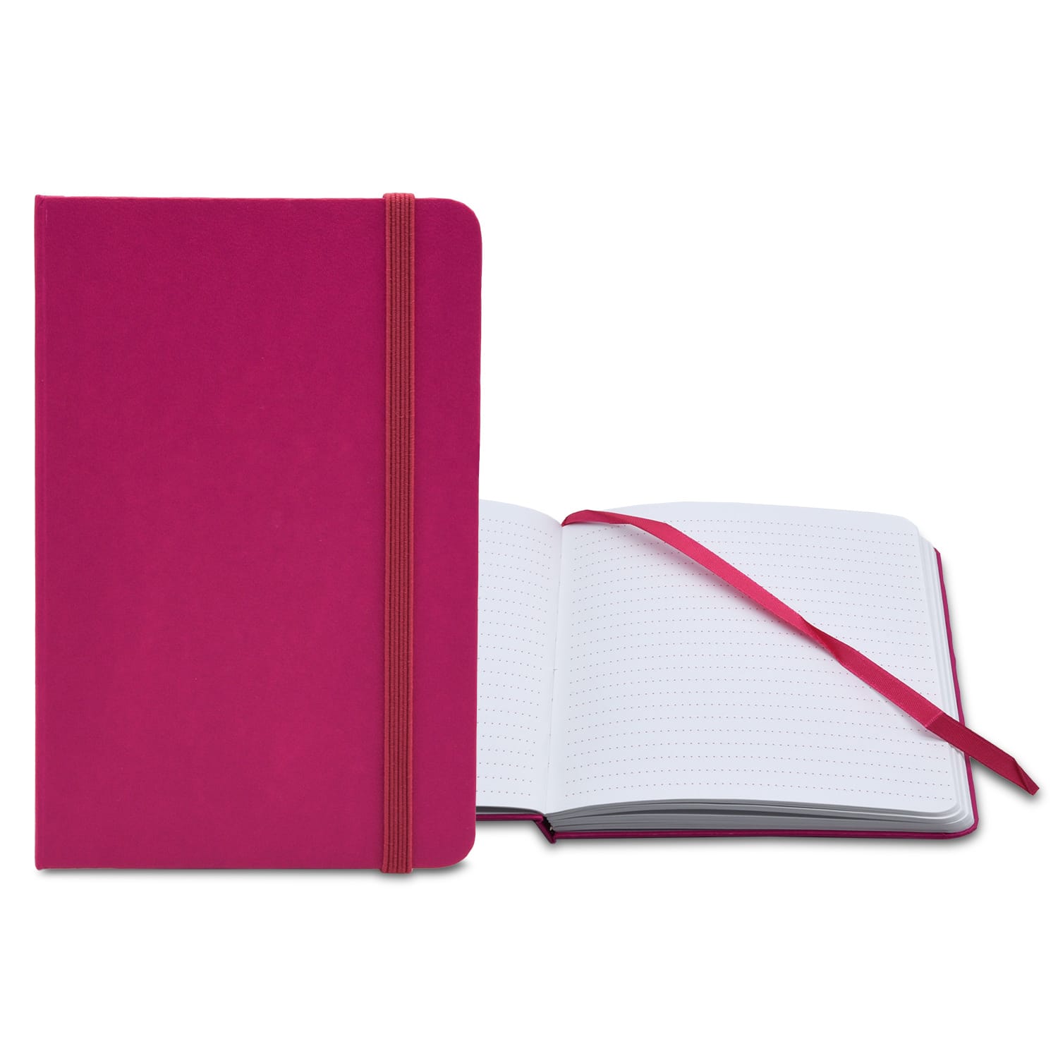 Special Pricing – While Quantity Last!** Perfect for writers, carpenters, students, and other note-takers. The Essential Book Bound journal is a promotional giveaway that’s bound to make a lasting impression. This sleek and convenient product is available in 4 bright colors and is book-bound with a leatherette cover, turned edges, an elastic closure, a ribbon bookmark, and 70 white sheets with matching color dotted lines. Complies with Prop 65. 4″ W x 6″ L
