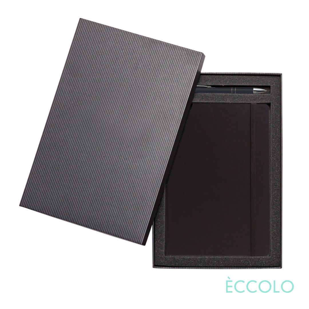 The “everything you need and more” journal. With all of the bells and whistles found in journals twice the price, our Techno journals are the top choice to get the most impact for your budget. The Techno Journal & Clicker Pen Gift Set Features…- P197 Clicker Pen: Aluminum click-action ballpoint pen with chrome trim and medium German made refill.- Black die-cut foam Gift Box- Smooth hardcover- 192 white, college ruled pages- FSC certified, 80 gram paper- Elastic band closure (color matched)- Ribbon marker (color matched)- Gusseted back pocket. – Dot grid paper also available*Belly Band & Promo Page Inserts Optional. See Decorating Info for details. 5.5″ W x 8.25″ H