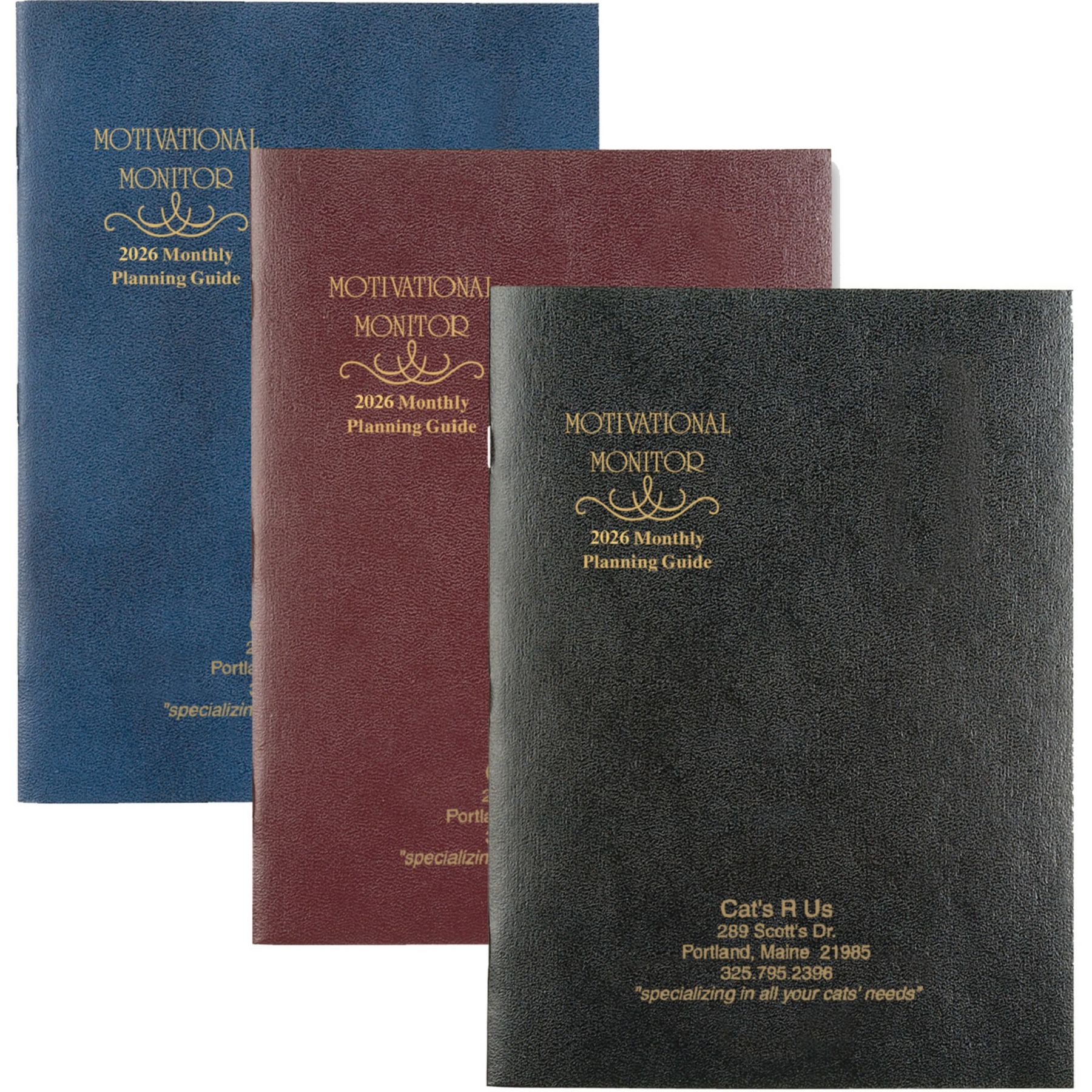 Plan your next promotion – Motivational Monthly Monitor. Large Imprint area. Planner name and year pre-stamped on cover. Stitched cardstock cover. Made in the USA. Complies with Prop 65. 7″ W x 10″ H