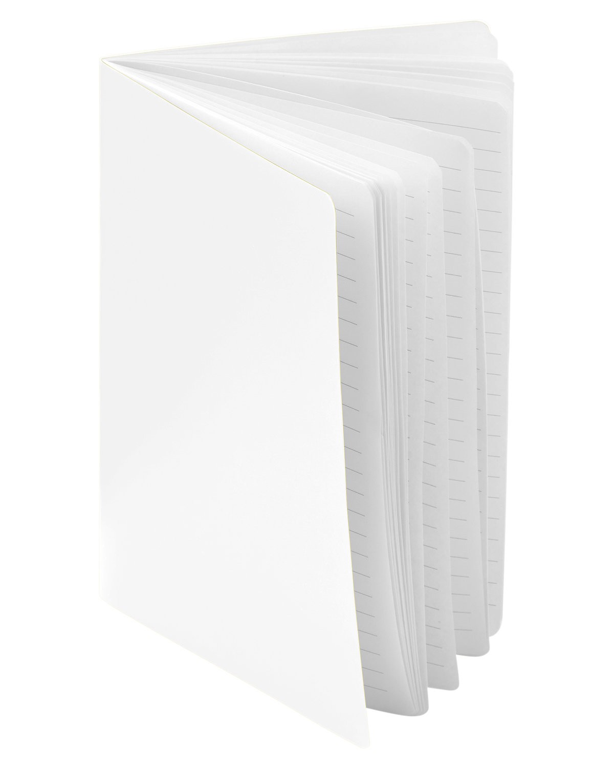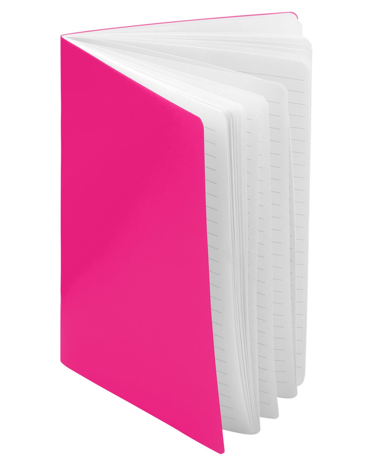 Recycled PP. Single-use notebook, ideal for meetings, conferences, and brainstorming sessions. 32 sheets lined, recycled white paper; front and back page blank. 5.8000″ W x 8.3000″ H
