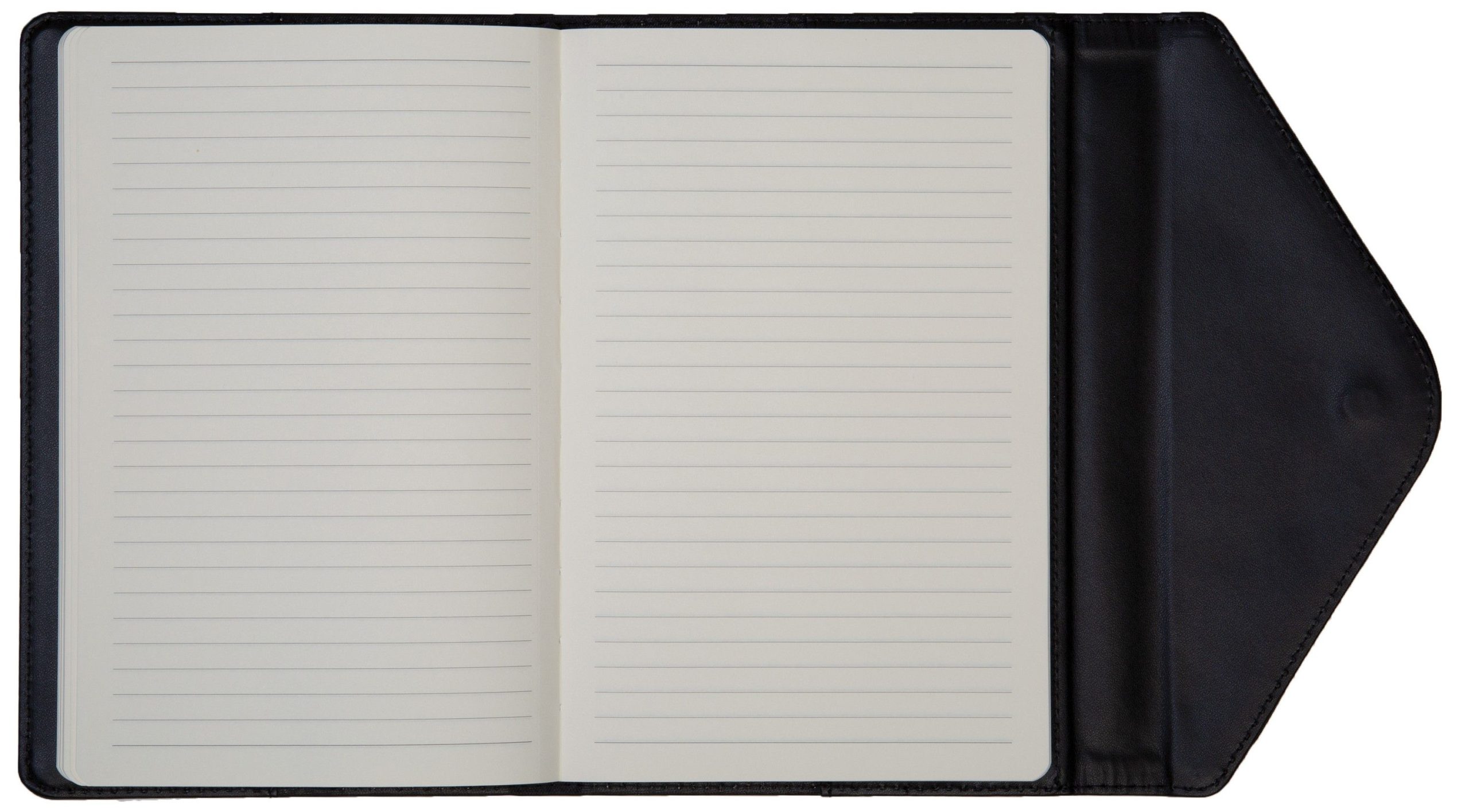 Smooth, stitched covers with magnetic wraparound closure. Includes blind deboss up to 16 square inches (limited imprint areas, call for details) and full-color graphic wrap. Refillable, perfect-bound notebook with 80 sheets of off-white, lined filler. Features matching ribbon page marker. Imported outer shell, decorated in the USA.. 5.5″ W x 8.5″ H