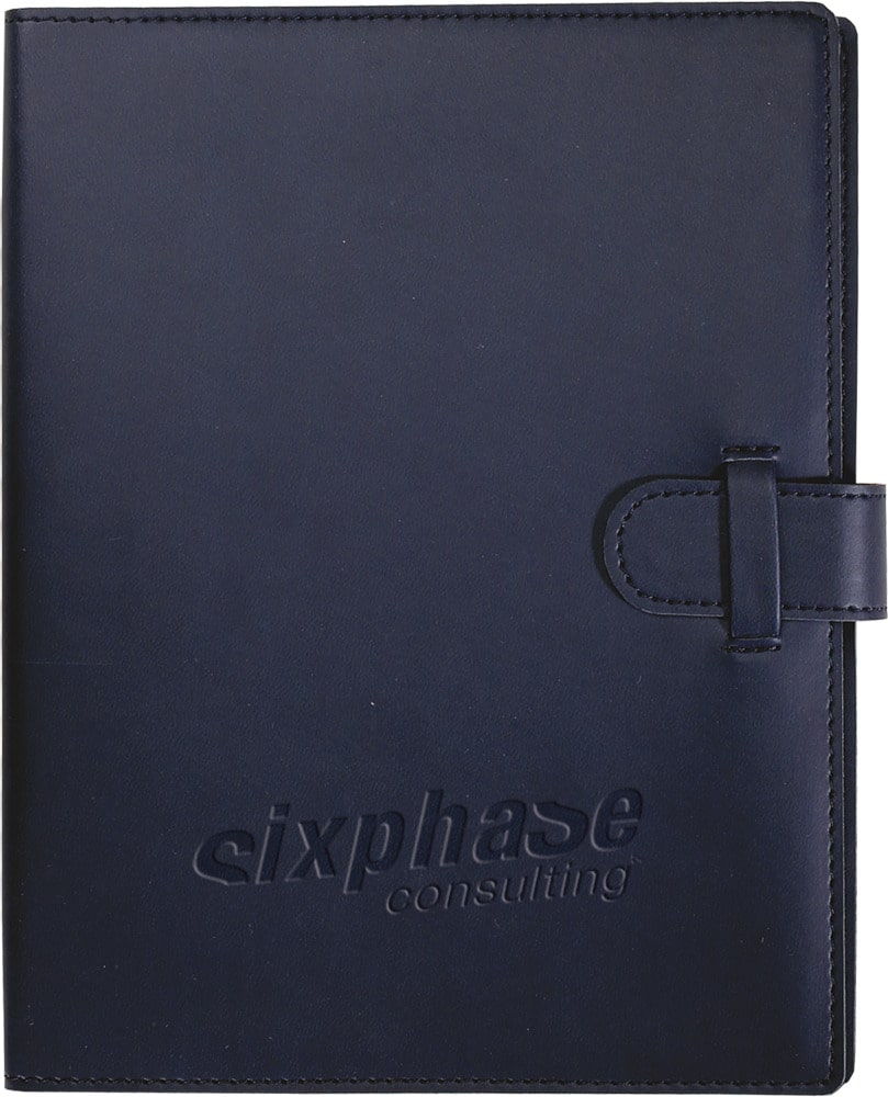 A traditional style with flexible covers the Dovana has all the elegance of the Pedovaâ„¢ model combined with USA refillable 80 sheets of line filler and a soft, flexible cover. Promote your brand with a book that’s as long-lasting as it is refined. The Dovanaâ„¢ also features a convenient business card insert, page marker ribbons, an elastic pen holder, a secure closure strap, and a custom debossed imprint of your company logo. Imported outer shell, decorated in the USA. Complies with FSC. 6″ W x 7.75″ H