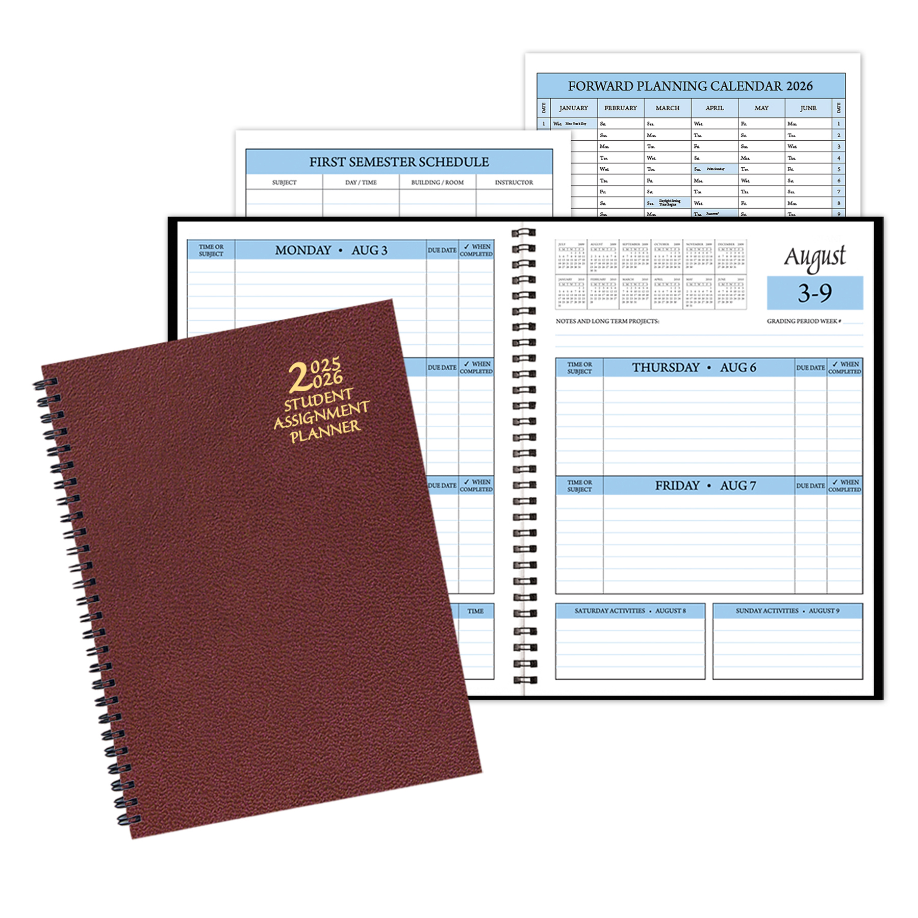 Introducing the Student Assignment Planner – a must-have for every student! This wire-bound planner features two full-year sections, a phone/address section, and weekly assignment sections to keep you organized. Stay on top of your class schedule and network with classmates using the class schedule/class network section. The planner also includes a full-year calendar with holidays, covering 12 months from August to July. 7″ W x 9 1/2″ H