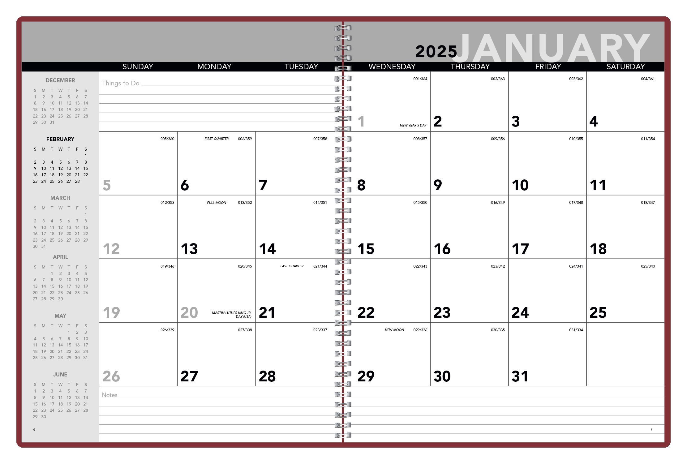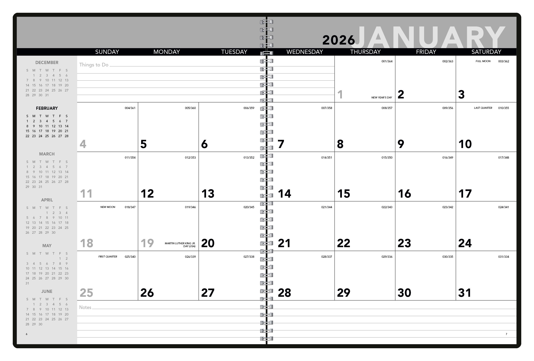Stay organized with the Monthly Planner. Each two-page spread displays an entire month and provides ample space for notes. Additional features include a one-year planning calendar and space for frequently called numbers. The SFI® label means that materials used for this product have been responsibly sourced. 17.56″ W x 11.31″ H